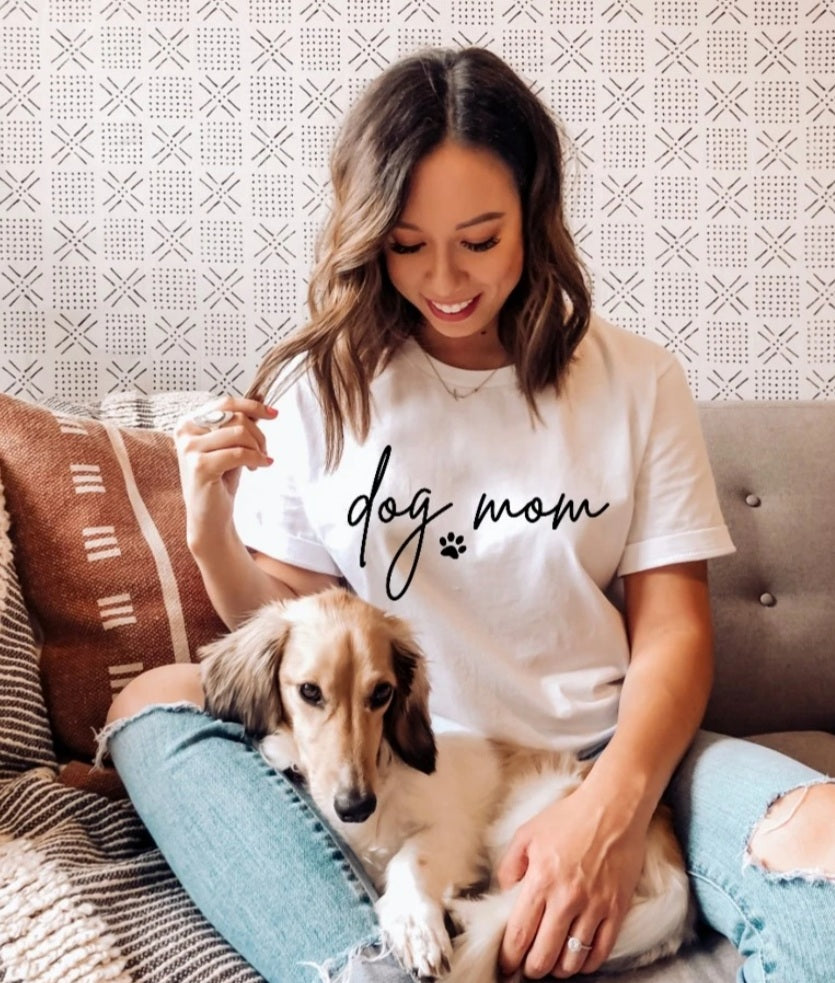 Sport your pup pride and show off your canine-caring side with our "Dog Mom" t-shirt. Crafted from soft and lightweight cotton, this comfortable classic will provide long-lasting comfort and timeless style. Show off your strong commitment to four-legged friends everywhere.