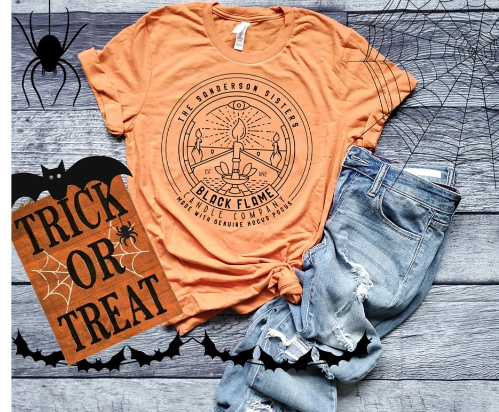 This Halloween t-shirt from Candle Company will have you feeling festive and fashionable. Made from soft, breathable fabrics, this comfortable tee is the perfect way to celebrate the spooky season.
