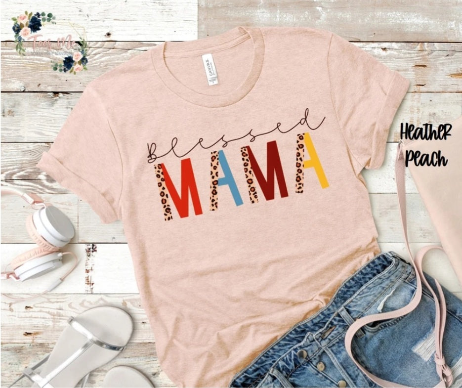 This Blessed Mama Boho tshirt is crafted from lightweight, breathable fabric for all-season wear. Its classic silhouette complements any outfit, making it a great choice for casual wear and special occasions alike.