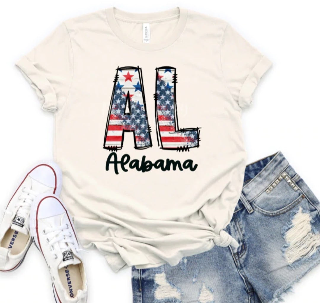 Show your American pride with this Alabama AL T-Shirt. Crafted from 100% cotton, this shirt features a patriotic design for a classic look. Show your support for the Heart of Dixie with this timeless design.
