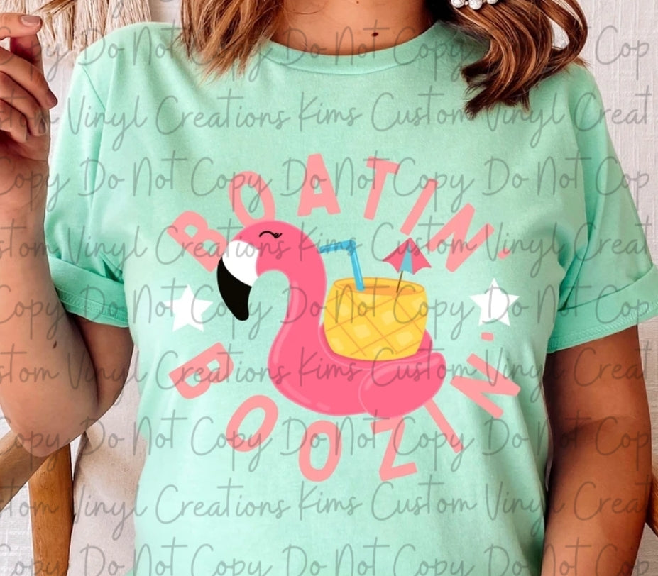 Show your style in the Boatin Boozin flamingo t-shirt. With its striking color and iconic design, this comfortable cotton shirt is sure to be a conversation starter. Wear it at the beach, on a boat, or while partying with friends - it's the perfect addition to any summer wardrobe.